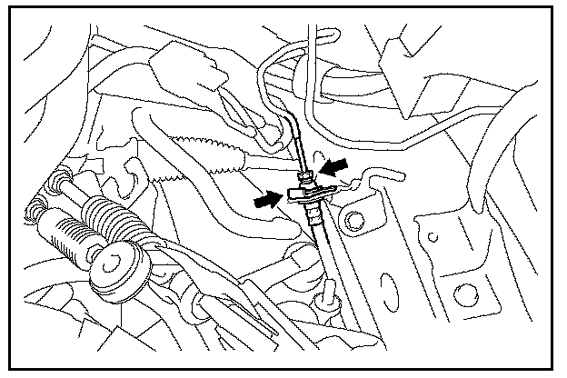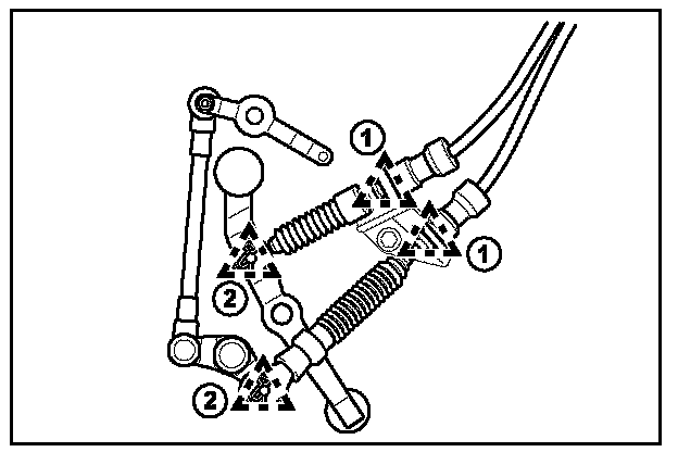 A. Install the 2 transmission control cables to the control cable bracket with the 2 new clips (1).
