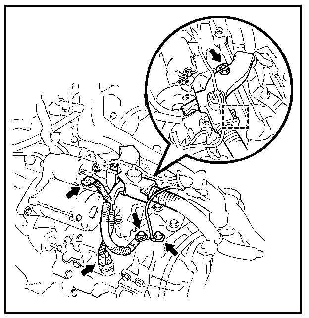 B. Install the wire harness to the manual transaxle with the clamp and nut.
