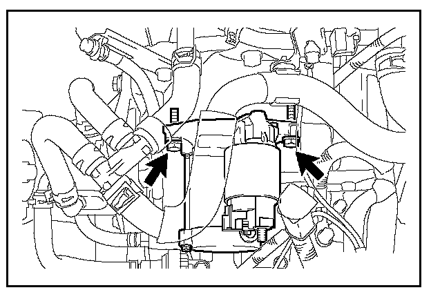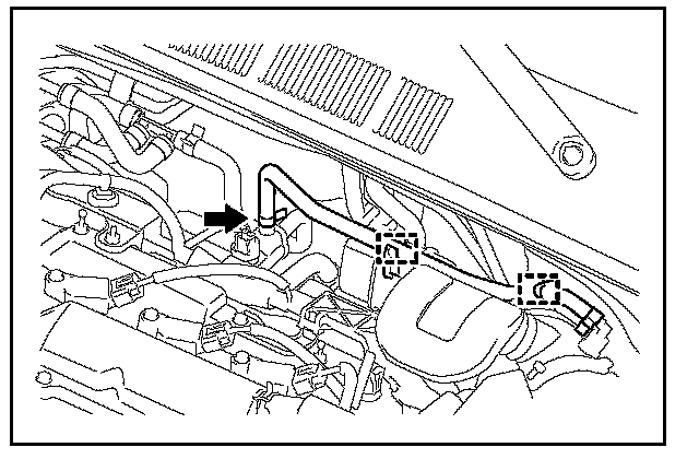 F. For PZEV vehicles: Connect the hose and engage the hose to the clips on the air cleaner hose.