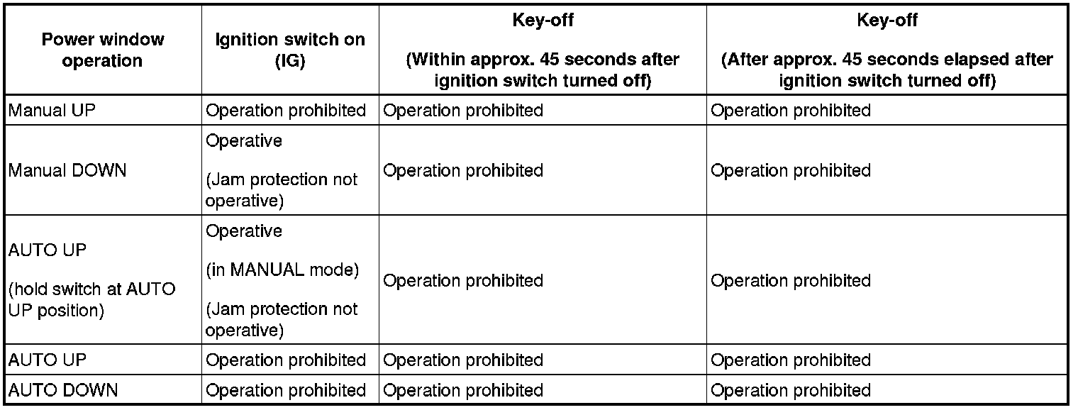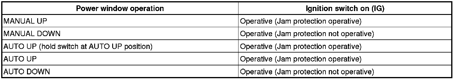 (a) The power window control system prohibits the following power window operation when the pulse sensor for the jam protection function has problems and the window position or the learned value is abnormal.