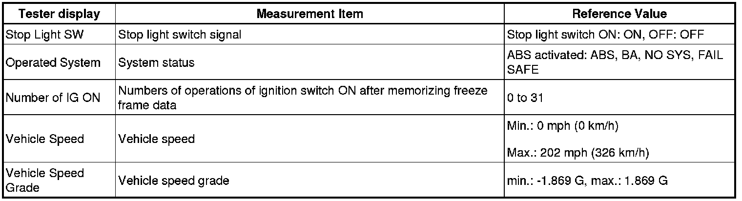 - Whenever a DTC is detected or the ABS operates, the skid control ECU stores the current vehicle (sensor) state as freeze frame data.