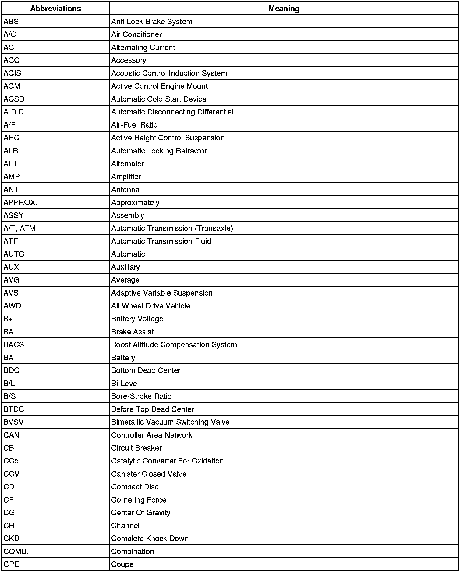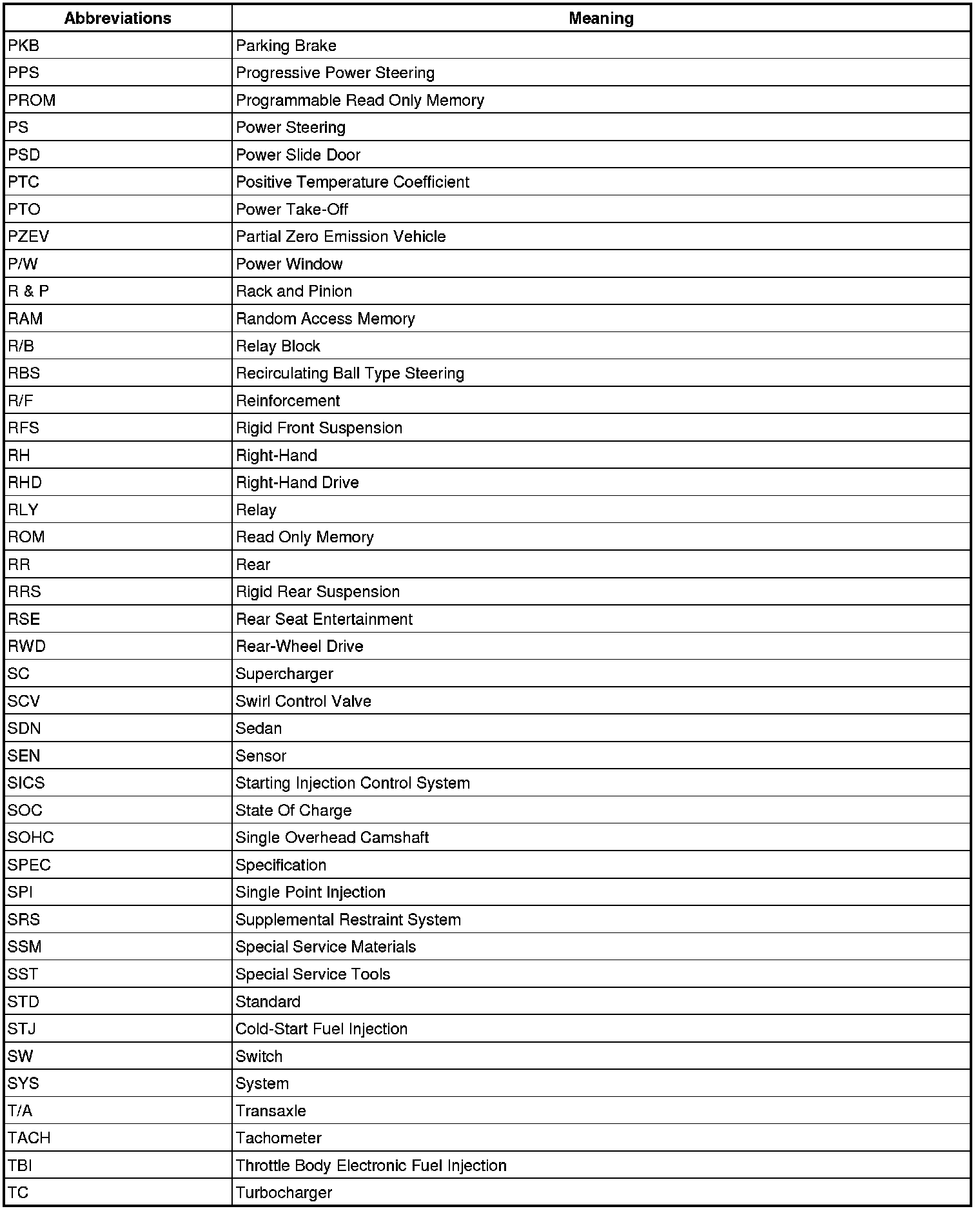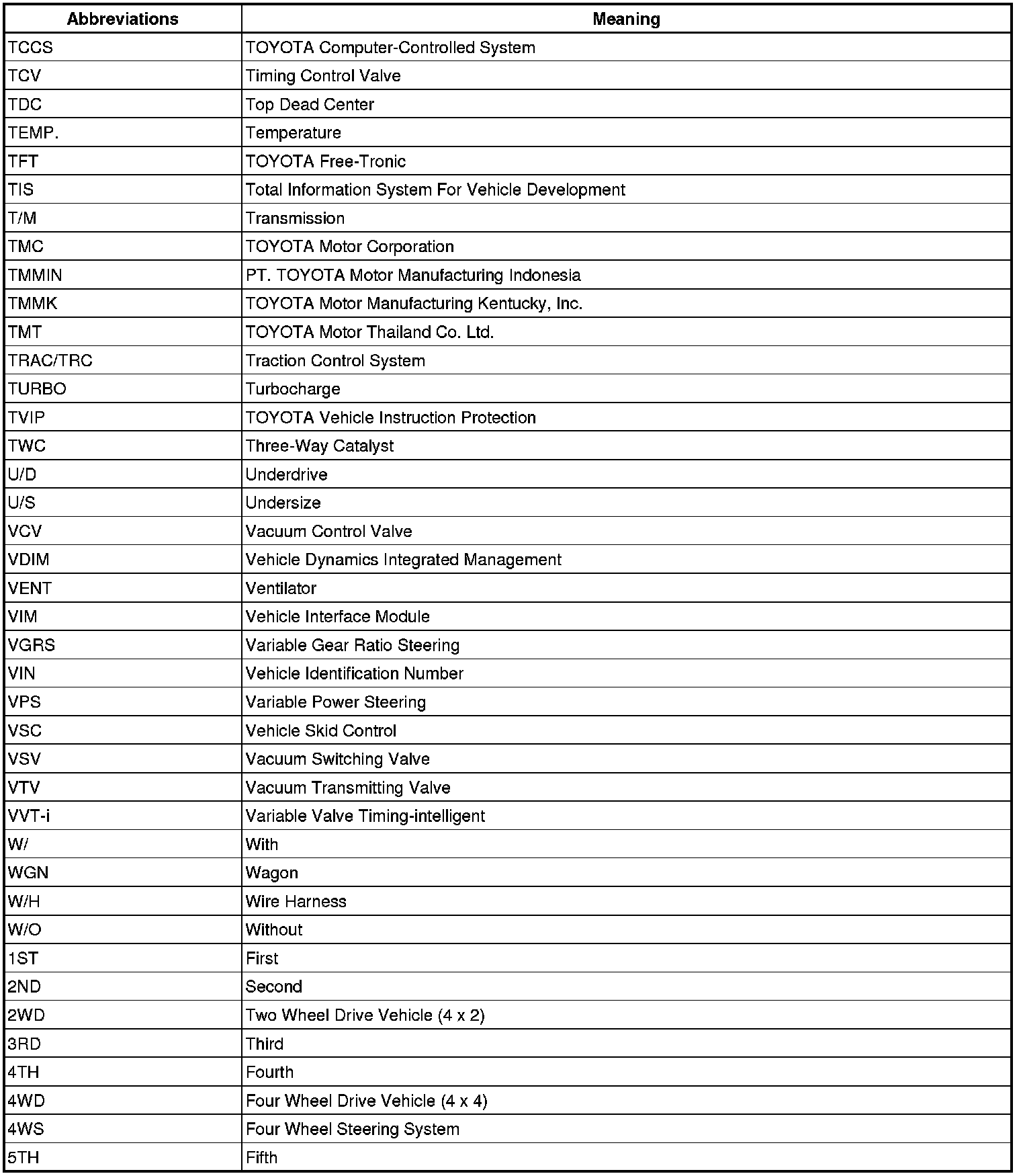 Terms - Abbreviations Used In Service Procedures