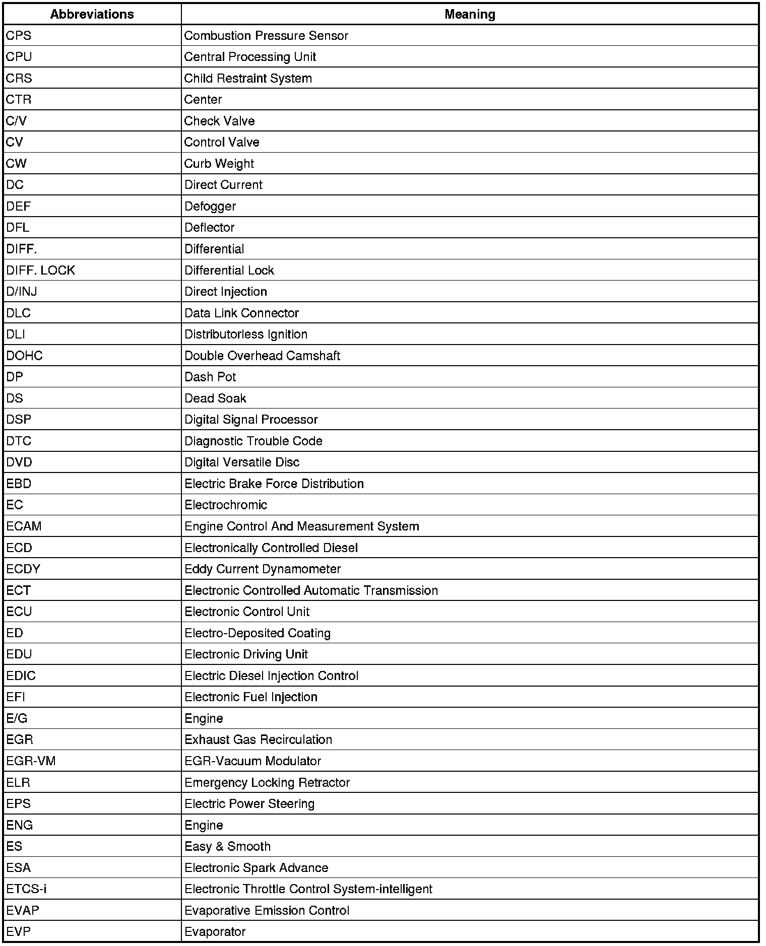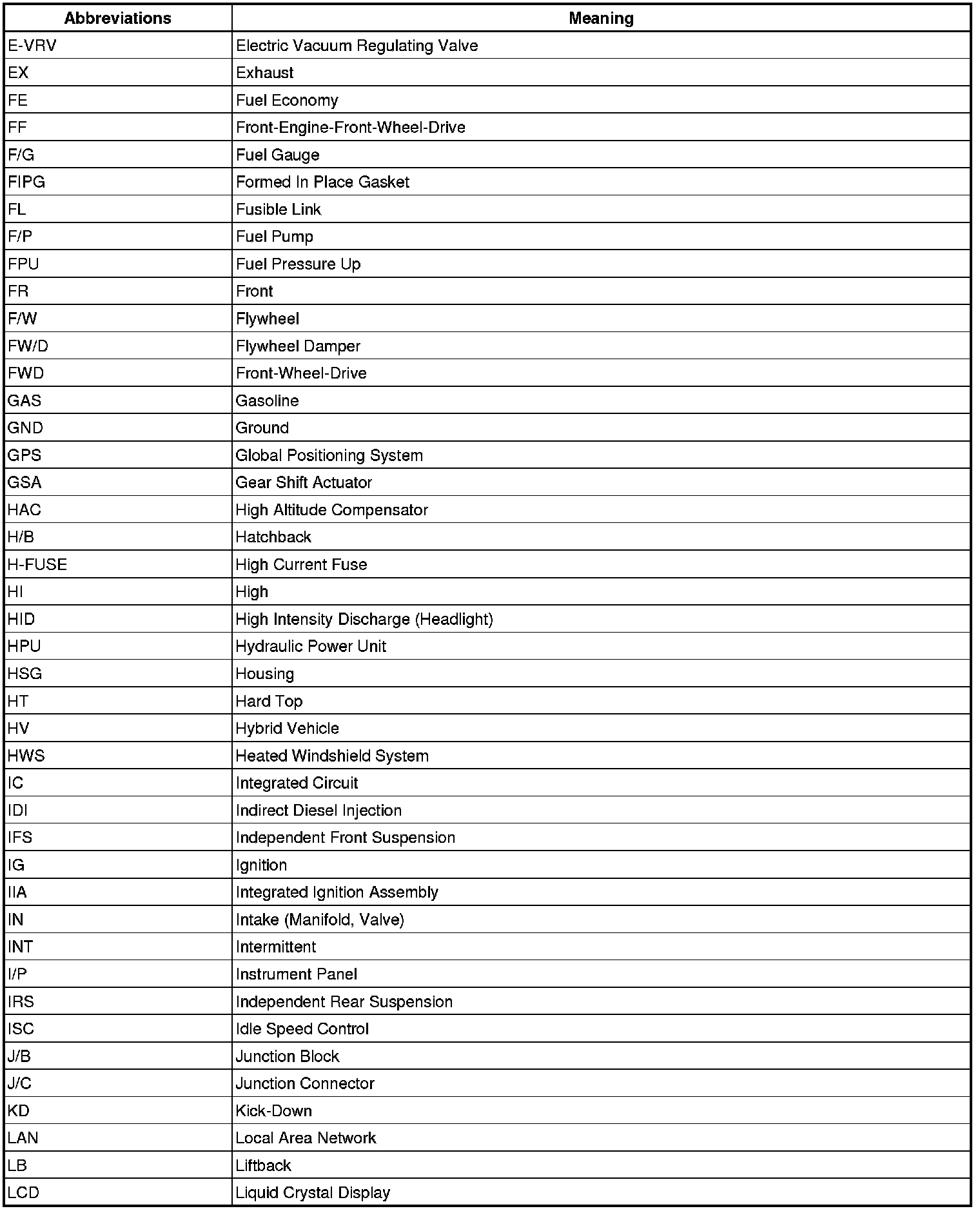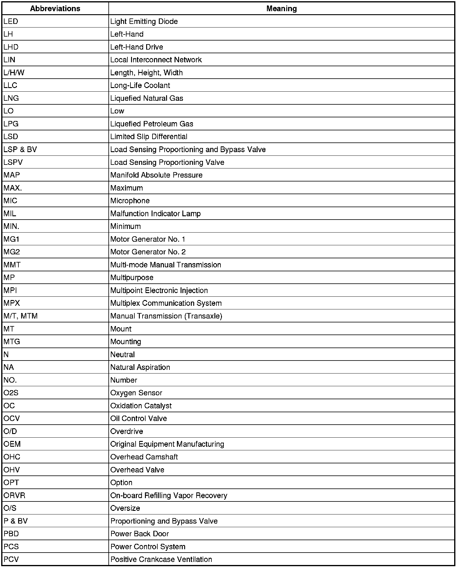 Terms - Abbreviations Used In Service Procedures
