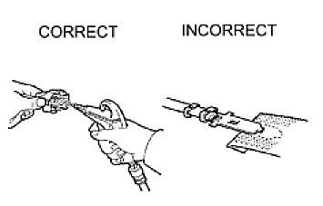 (3) Checking the contact pressure of the terminal: Prepare a spare male terminal. Insert it into a female terminal, and check for ample tension when inserting and after full engagement.