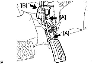 (a) Install the accelerator pedal with the 2 bolts [A].