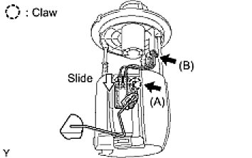 (a) Slide the fuel sender gauge to fit the claw (A).