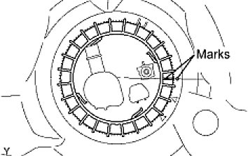(d) While holding the fuel suction tube by hand, align the marks of a new fuel pump gauge retainer and fuel tank as shown, then install the fuel pump gauge retainer.