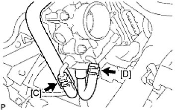 (c) Connect the water by-pass hose No. 2 [C] to the throttle body.