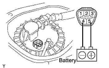 (m) If you have no Techstream, connect the positive (+) lead from the battery to terminal 5 of the connector, and the negative (-) lead to terminal 4.