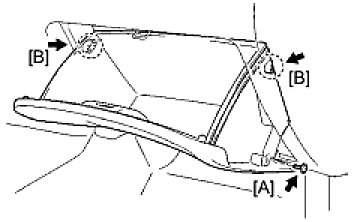 (b) Deform the upper part of the glove compartment door assembly to release the stoppers [B].