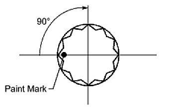 - Check that the paint marks of each bolt are at a 90° angle from the original position.