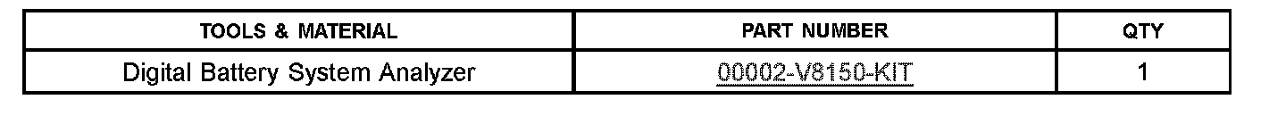 ^ Analyzer (P/N 00002-V8150-KIT). Refer to TSB PG001-06, "Battery Maintenance for In Stock Vehicles and Pre-Delivery" for complete battery maintenance procedures.
