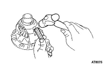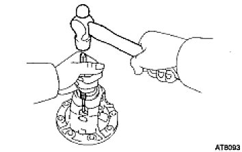 (a) Using a pin punch and hammer, drive the front differential pinion shaft straight pin into the hole in the front differential pinion shaft through the front differential case.