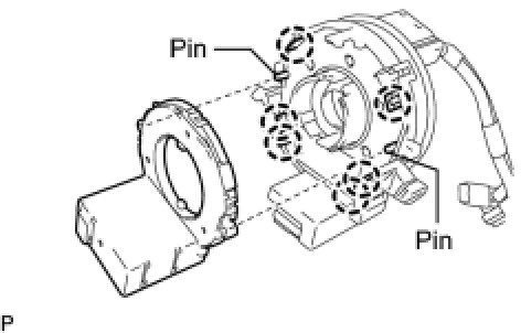 (a) Align the locating pins, engage the claws, and install the steering angle sensor to the spiral cable.
