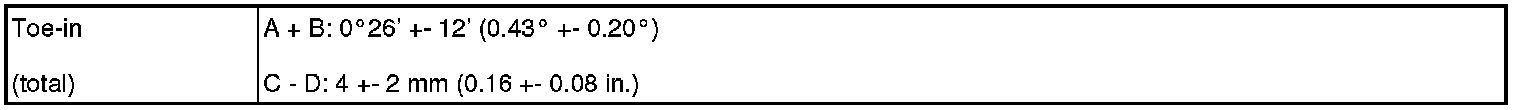- If toe-in is not within the specified range, inspect the suspension parts and replace them if necessary.