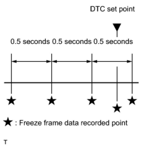 (b) The ECM records engine conditions in the form of freeze frame data every 0.5 seconds. Using Techstream, five separate sets of freeze frame data, including the data values at the time when the DTC was set, can be checked.