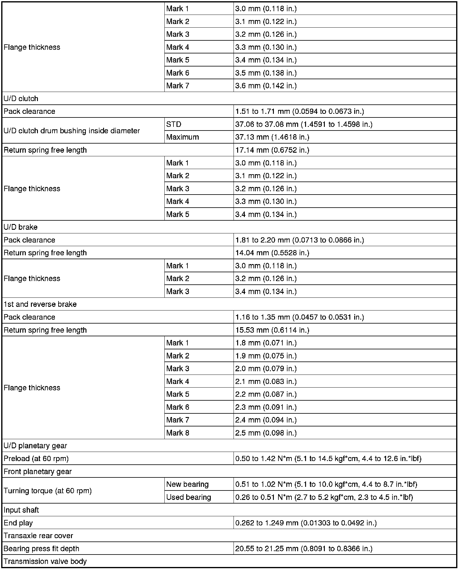 SERVICE SPECIFICATIONS: U151E AUTOMATIC TRANSAXLE: