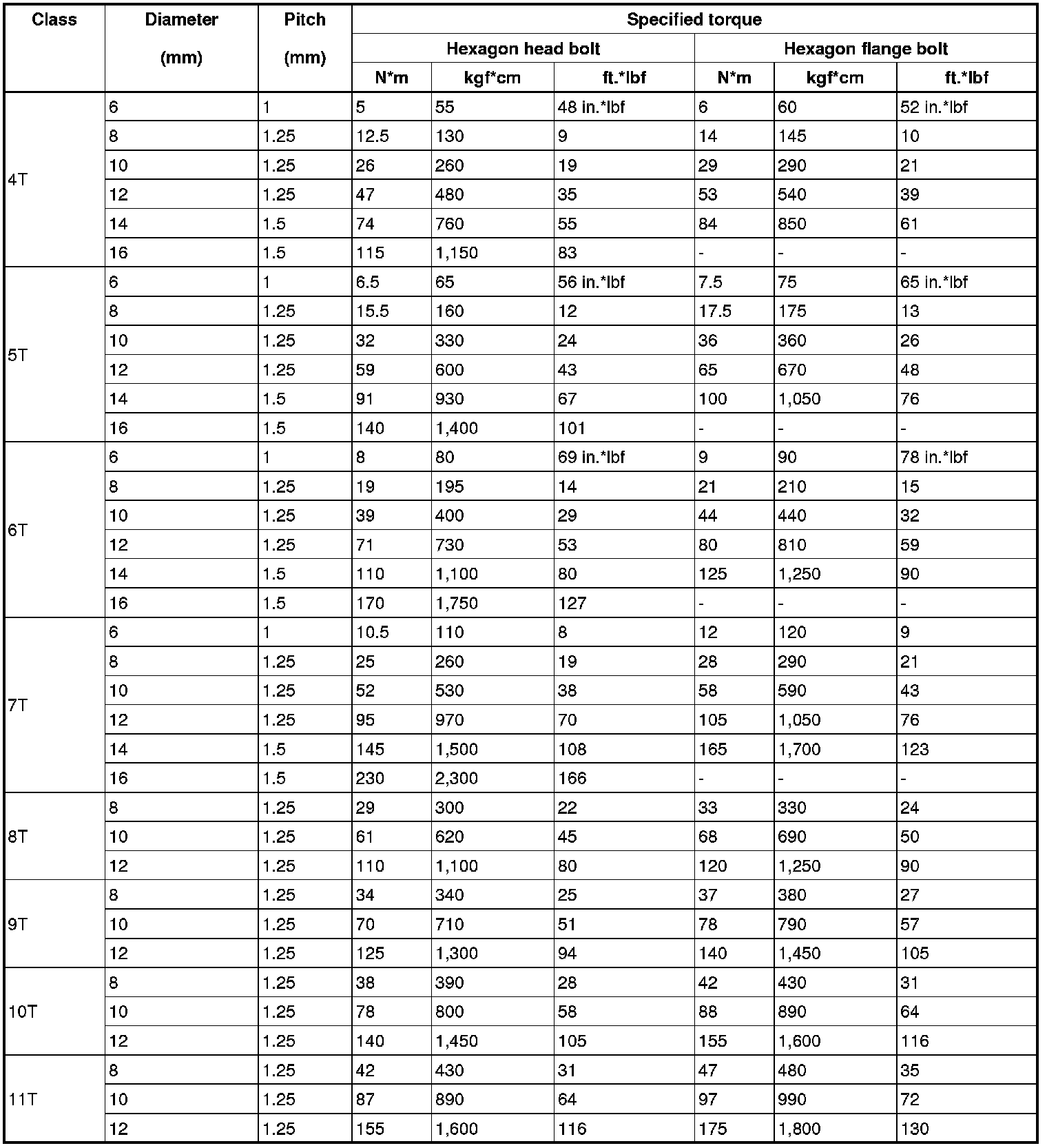 Standard Bolt - Specified Torque For Standard Bolts