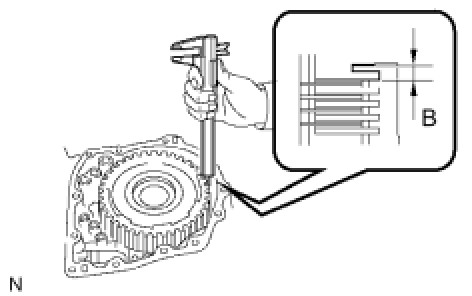 (a) Using a vernier calipers, measure the distance between the disc surface and snap ring surface (Dimension B).