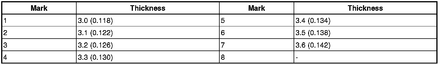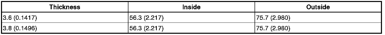 Race thickness: mm (in.)