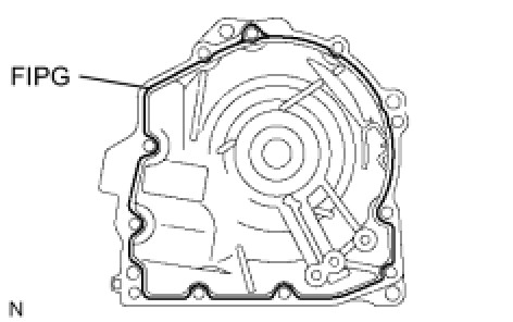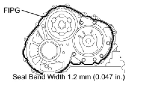 NOTE: Concerning about the amount of the FIPG application, the amount should be controlled to from even sealing film on entire flange surface and have slight protrusion of the FIPG all around of the connecting area. The FIPG shall be applied continuously on the flange. (Reference value of the section diameter: dia1.2)