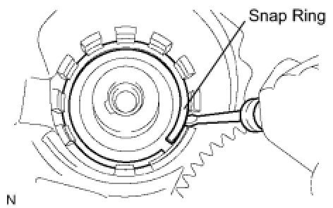 NOTE: The snap ring should be fixed certainly in the groove of the transaxle case as the gap exists except in the lock of teeth.