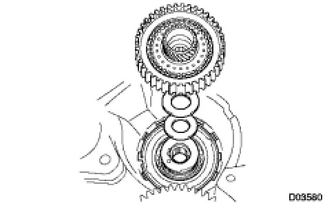 NOTE: The disc in the direct clutch should completely match with the hub attached outside the rear planetary sun gear. Otherwise, the rear cover can not be installed.