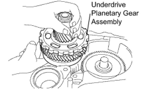 NOTE: Engage all the discs of underdrive clutch and hub splines of the underdrive planetary gear assembly firmly and assemble them securely.