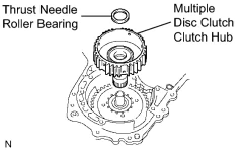 (b) Coat the thrust needle roller bearing and race with yellow petrolatum, install them onto the multiple disc clutch hub.