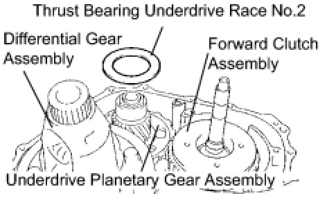 (a) Install the thrust bearing underdrive race No.2 to the underdrive planetary gear assembly.