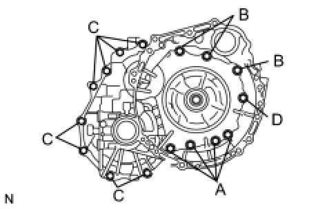 HINT: Apply seal packing or equivalent to the bolt A and bolt D.