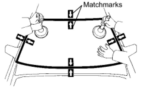 - When reusing the windshield glass, check and correct the matchmarks position.