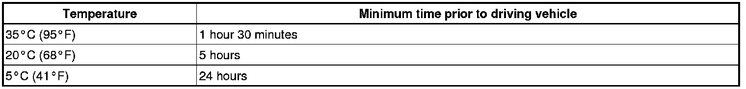 NOTE: Do not drive the vehicle for the amount of time written in the table below.