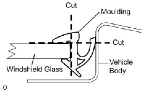 NOTE: Leave as much adhesive on the vehicle body as possible when removing the windshield glass.