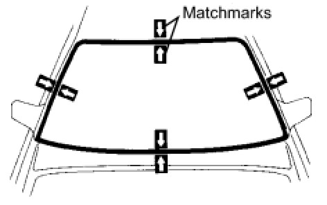 (d) Place matchmarks over the windshield glass and vehicle body on the locations indicated in the illustration.