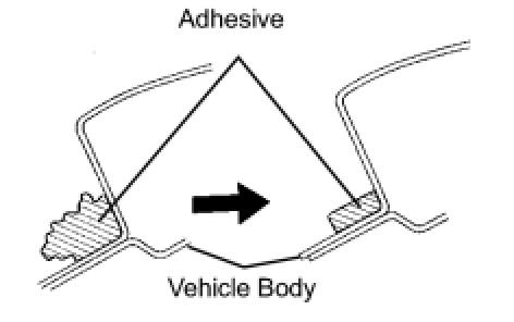 (1) On the contact surface of the vehicle body, use a knife to cut away excess adhesive as shown in the illustration.