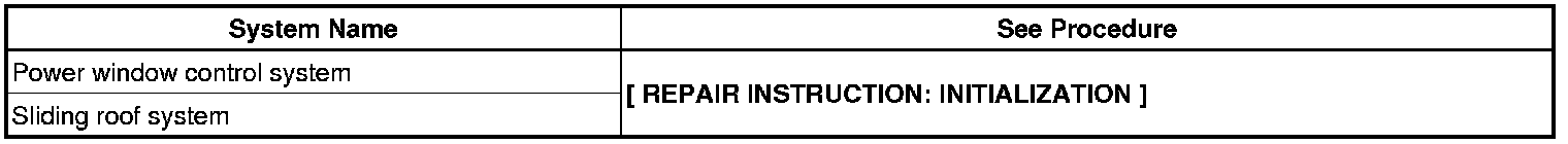 NOTE: If either battery terminal is disconnected, the following systems must be initialized after the terminal is reconnected.
