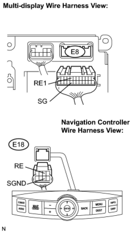 (a) Disconnect the multi-display connector E8 and navigation controller connector E18.