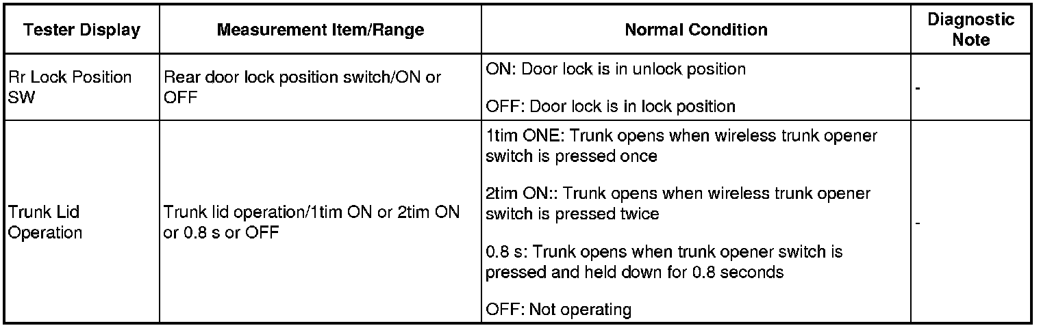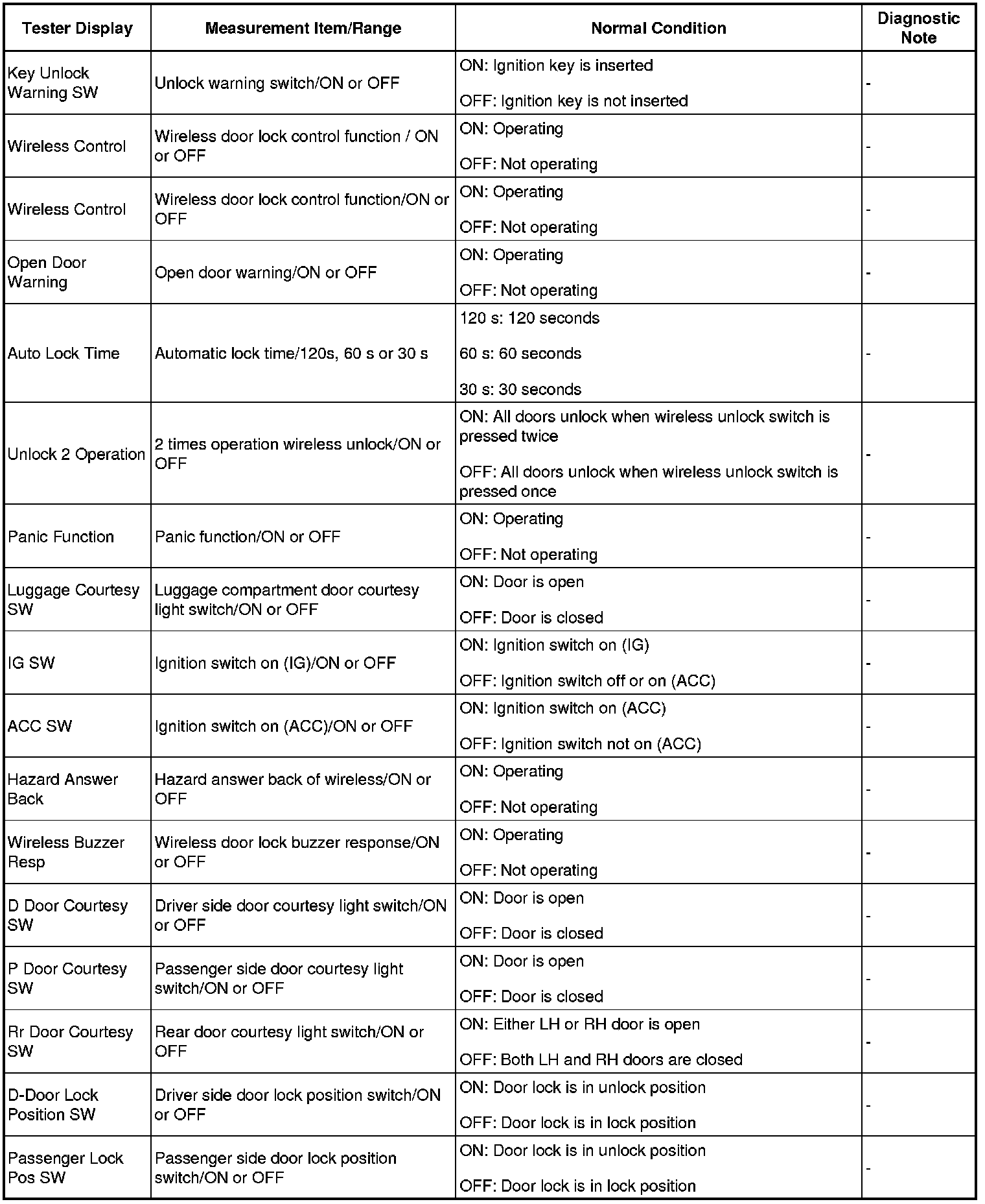 DOOR LOCK: WIRELESS DOOR LOCK CONTROL SYSTEM: DATA LIST / ACTIVE TEST