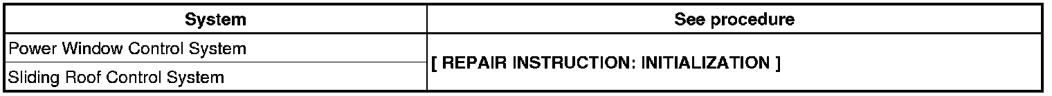 NOTE: When disconnecting the negative (-) battery terminal, initialize the following system(s) after the terminal is reconnected.