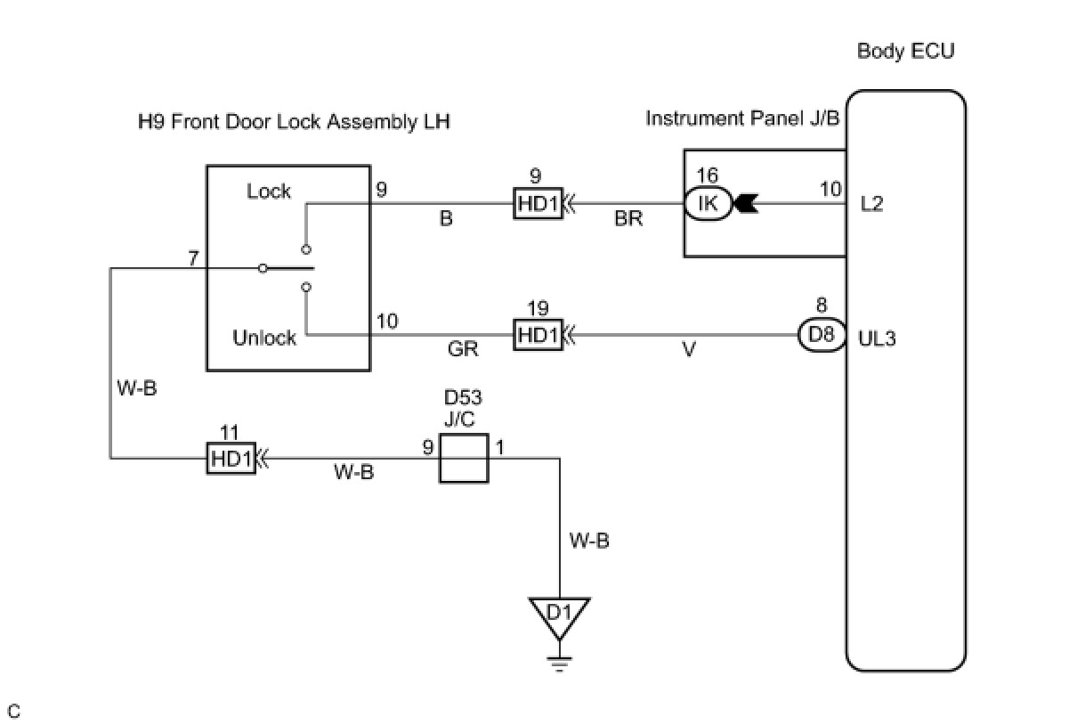 DOOR LOCK: POWER DOOR LOCK CONTROL SYSTEM: Door Key Lock / Unlock Switch Circuit
