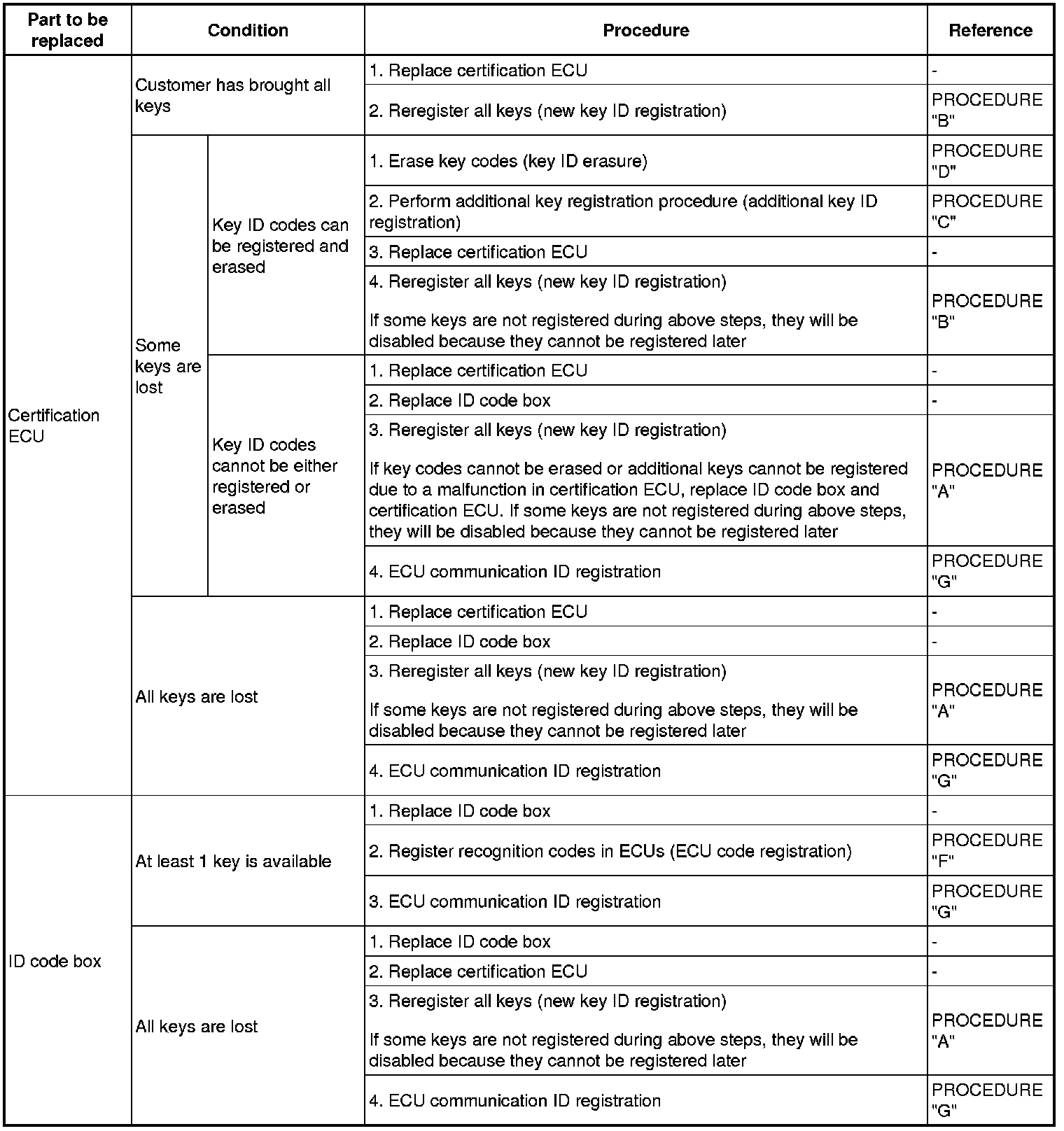 - Code registration is needed when the certification ECU, ID code box, steering lock ECU or key is replaced with a new one.