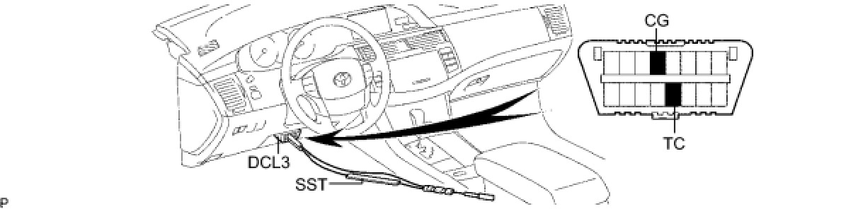(1) Using SST, connect terminals TC and CG of the DLC3.