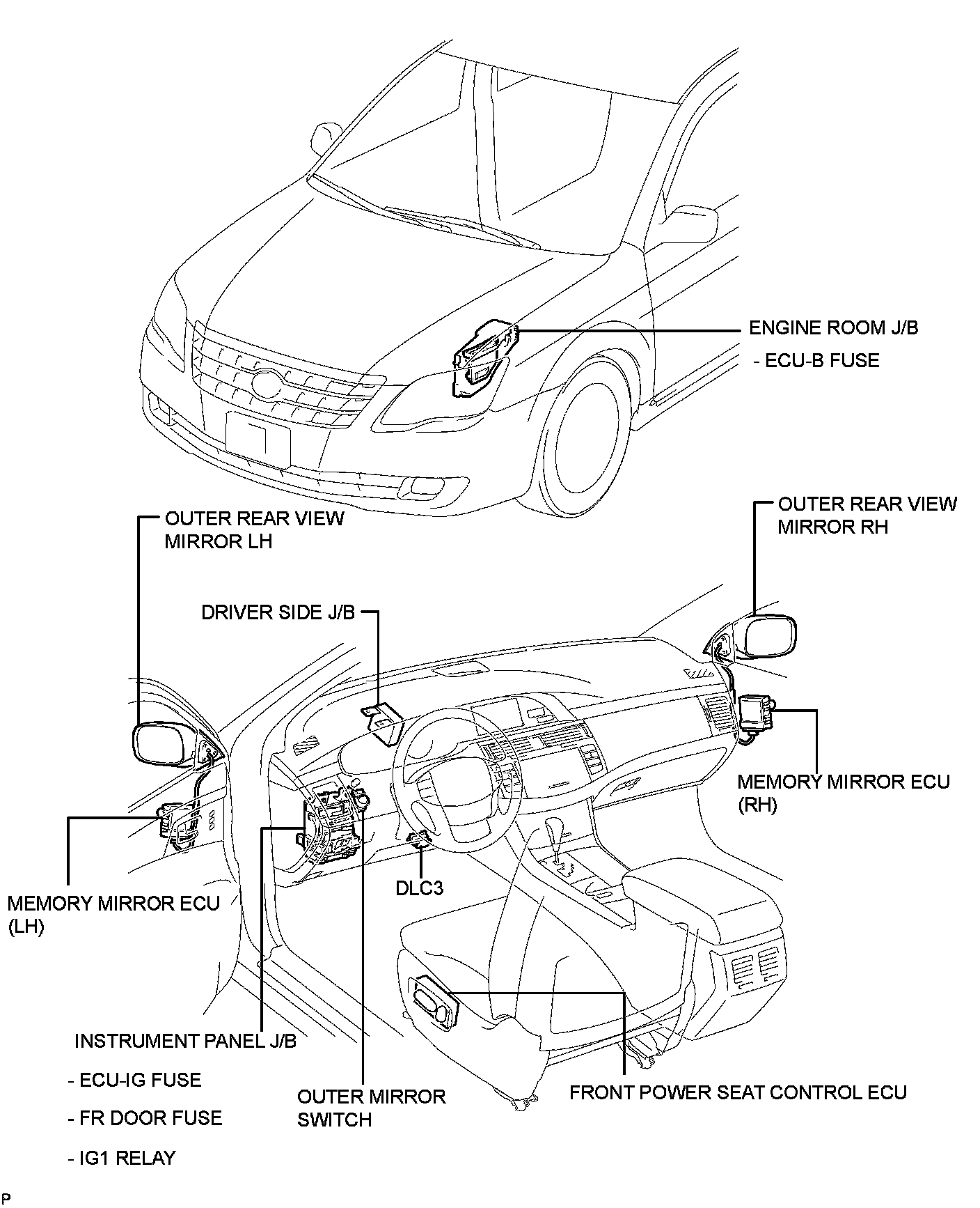 MIRROR: POWER MIRROR CONTROL SYSTEM (w/ Memory): PARTS LOCATION
