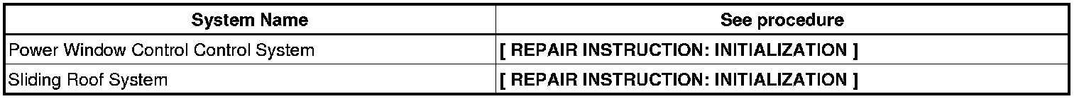 NOTE: when disconnecting the negative (-) battery terminal, initialize the following systems after the terminal is reconnected.