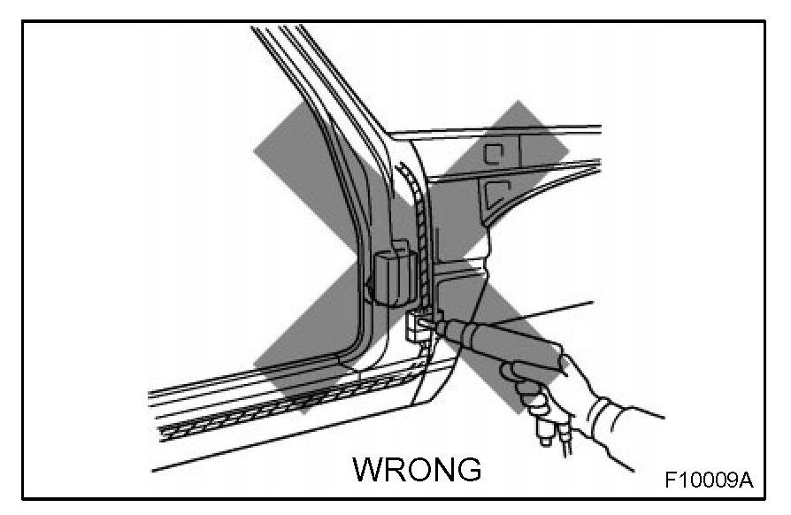 1. For water-proofing and anti-corrosion measures, always apply the body sealer to the body panel seams and hems of the doors, hoods, etc.
