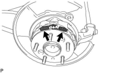 (c) Remove the parking brake shoe hold down spring No. 1 cup, the parking brake shoe hold down spring, the parking brake shoe hold down spring No. 2 cup, and the parking brake shoe hold down spring No. 2 pin.
