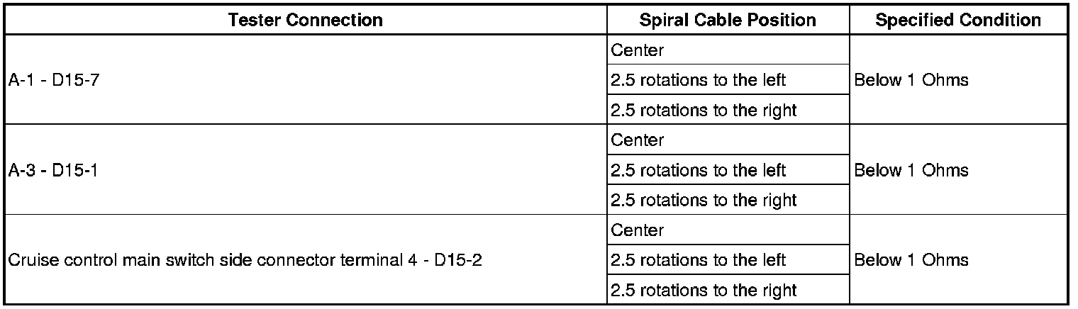 3. CHECK HARNESS AND CONNECTOR (CRUISE CONTROL MAIN SWITCH - SPIRAL CABLE)