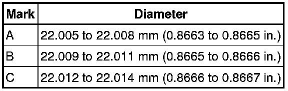 Standard diameter: 10.8 to 11.0 mm (0.4252 to 0.4331 in.)
