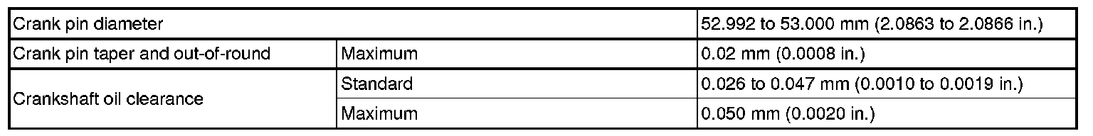 Standard lower bearing center thickness (No. 2 and No. 3 journals):